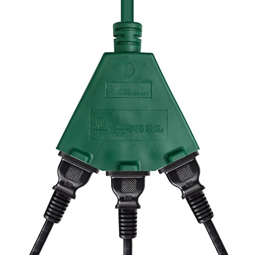 1 to 4 splitter extension cord, max 33.3 ft end to end (43 ft total), 3 prong plug with 4 extended outlets, 16awg/3c sjtw extension cord. 1 to 3 way outlet indoor & outdoor use weatherproof sjtw 16awg 3 prong grounded extension cord with multiple. Pvc jacket protects against moisture, and direct sunlight;. Plus 6 ft.), expands 1 wall outlet into 3 extended outlets (up to 28 ft.